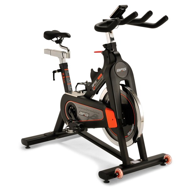 Body Flex Sports Body Rider BCY6000 Indoor Upright Exercise Bike with Curve Crank Technology Rear Drive Flywheel and Heart Rate Monitor System. This bike is compact and fits neatly into home gyms. Rear stabiliser feet.