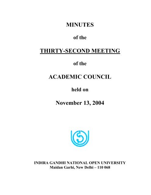 32nd Meeting Of Academic Council Ignou